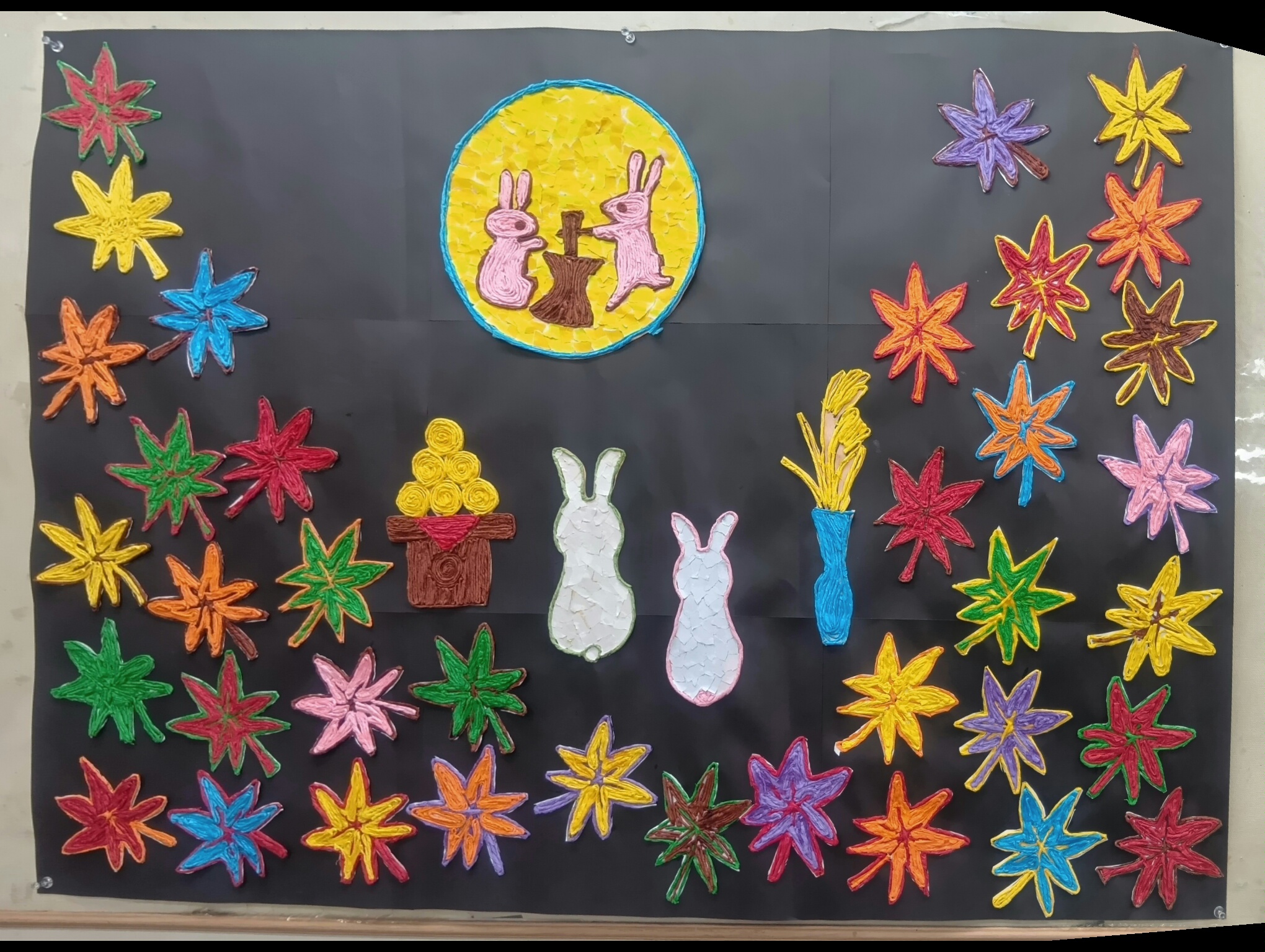 本日は、月が一番きれいに見える「中秋の名月」ですね。 今日は天気も良いし、きっと綺麗に見えるのでは…と期待できますね(^^)/ そんな期待も込めつつ、みんなで作成しました! 展示が変わると、ぐっと部屋の雰囲気も秋らしくなりました^^